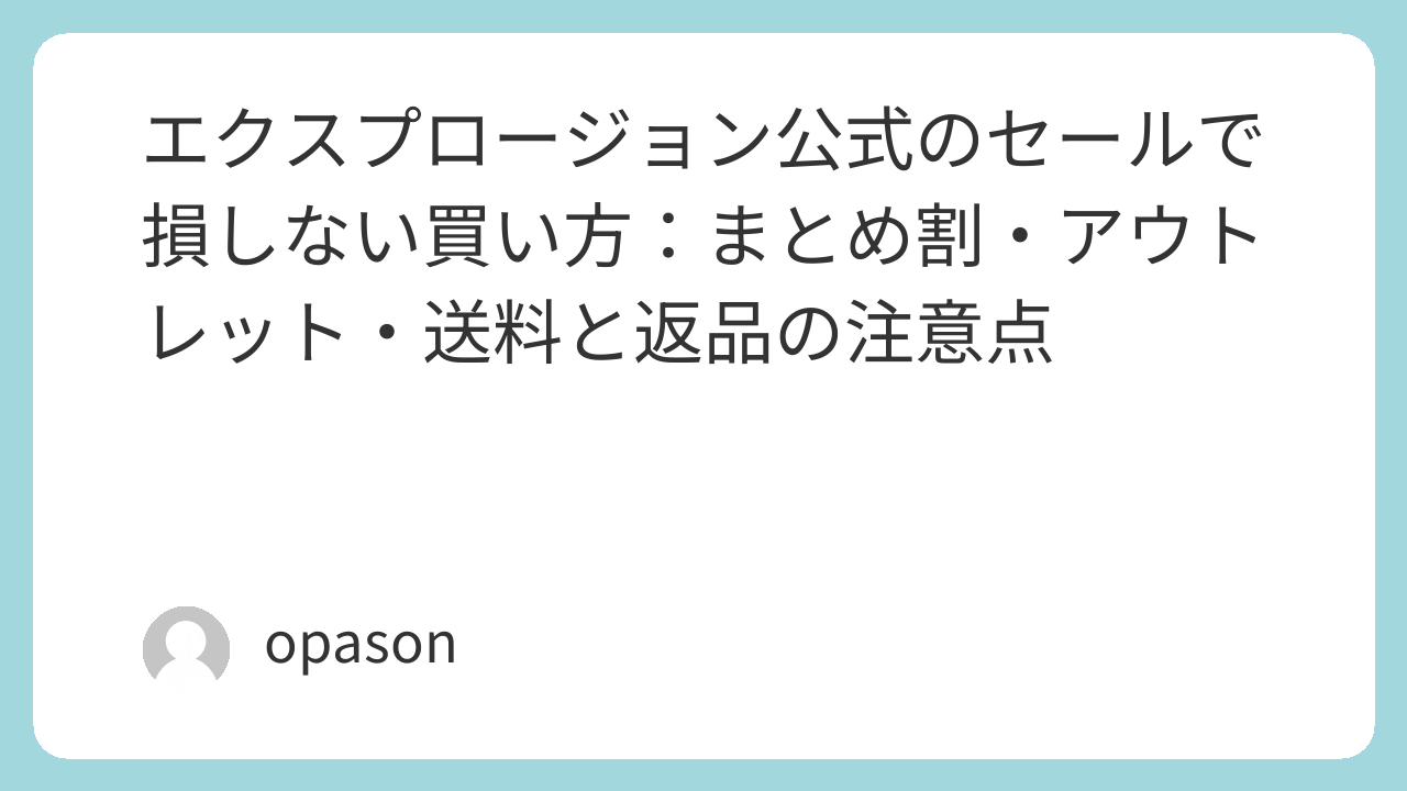 エクスプロージョンのセールは、運よく安いタイミングを引くゲームではなく、「アウトレット」「まとめ割」「送料」「返品条件」の4点を押さえて買う設計ができる人ほど得をします。買う前に一度、このチェックリストで整えてから注文するだけで、セールでの失敗はかなり減らせます。