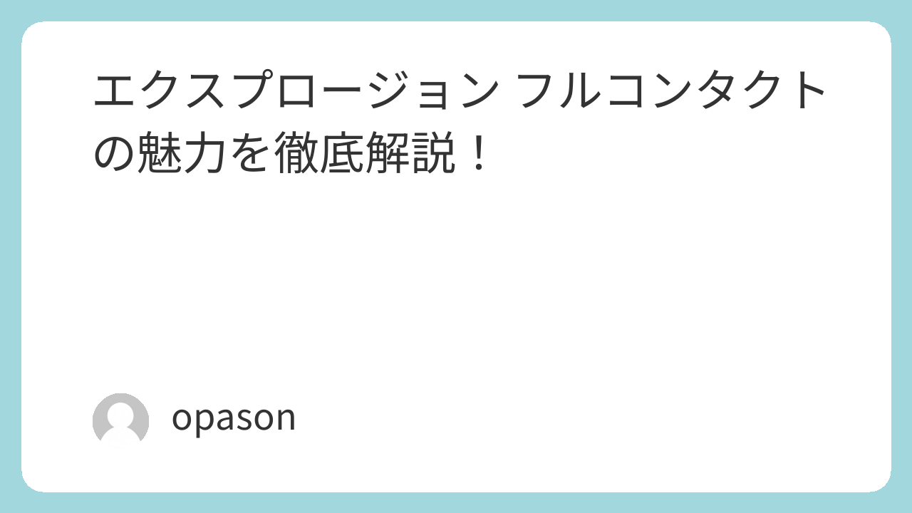 これで、エクスプロージョン フルコンタクトを使いこなすための第一歩を踏み出すことができるでしょう。