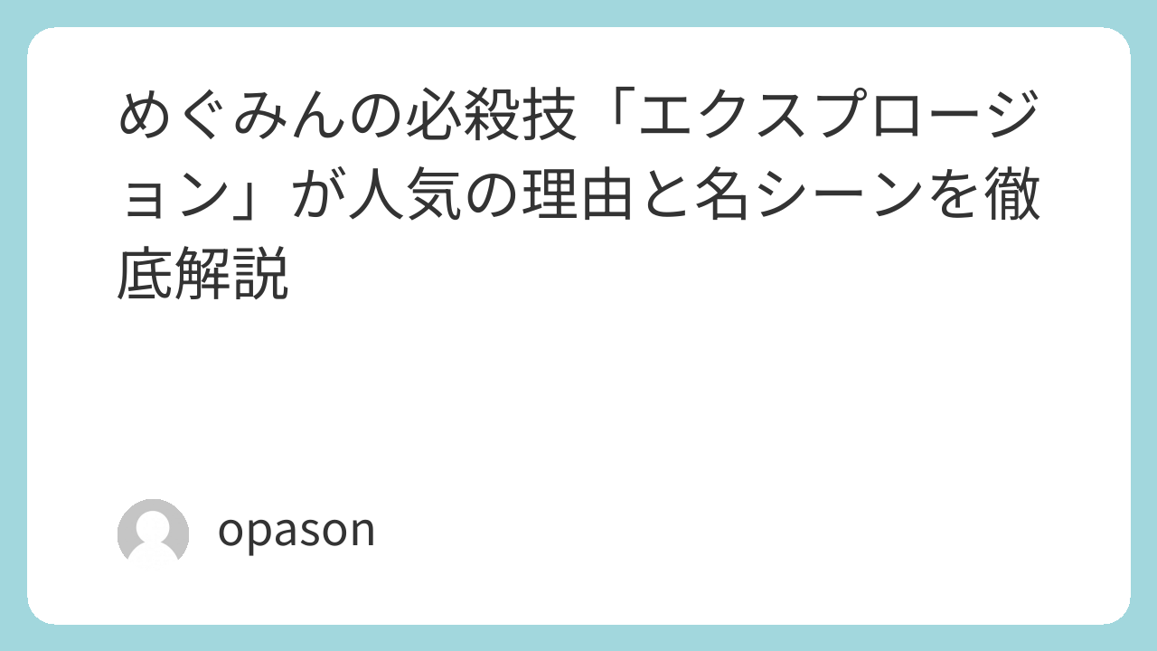 このように、めぐみんのキャラクターを象徴する「エクスプロージョン」は、物語を盛り上げる重要な要素であり、ファンの間でも非常に愛されています。