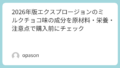 ただし注意点もあります。フレーバー付きプロテインは、風味を整えるために甘味料や香料、乳化剤などが配合されるのが一般的で、ここに好みが出ます。ミルクチョコレート味も例外ではなく、「甘さは欲しいけど後味は軽いほうがいい」など、個人の嗜好に左右されます。購入前は商品ページの原材料・栄養成分表示を必ず確認し、乳・大豆由来原料に気をつけてください。