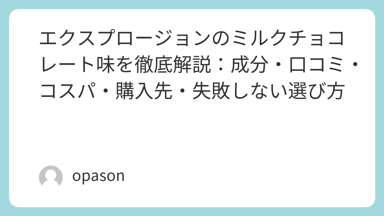 エクスプロージョンのミルクチョコレート味は、チョコ系の定番として継続しやすい一方で、人工甘味料の後味や溶け感に好みが出ます。だからこそ、初回は少量や中間サイズで相性確認をし、問題なければ大容量でコスパを取りにいく。この順番が最も合理的です。