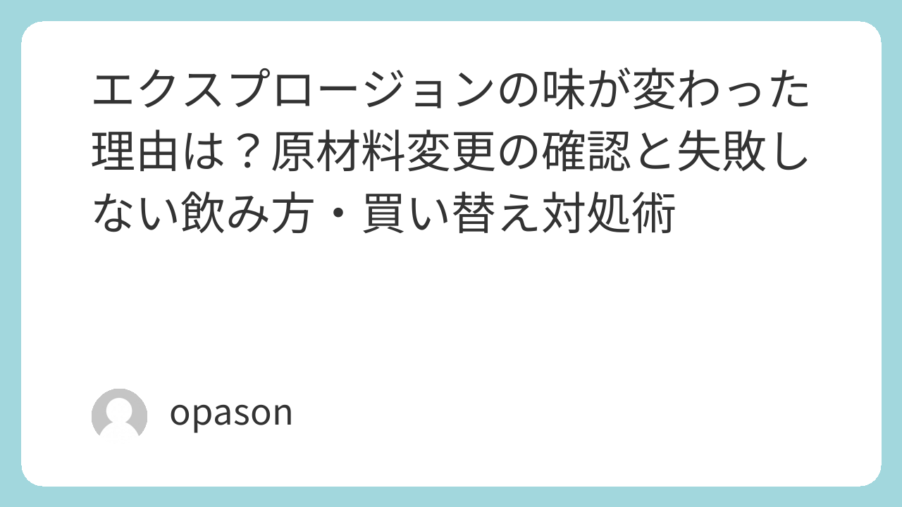 「エクスプロージョンの味が変わった」と感じたときは、原材料・配合の変更やロット差の可能性を踏まえつつ、まずは原材料表示の比較と作り方の再現テストで切り分けるのが最短です。多くの場合、濃度・水温・シェイカーの見直しで“違和感”は軽くなります。それでも合わないなら、同一規格のままフレーバーを変える、もしくは買い替えで好みに寄せるのが現実的な対処になります。