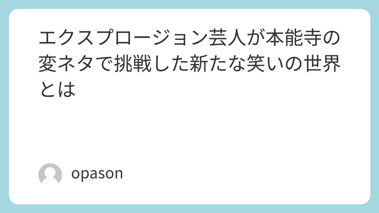 エクスプロージョン芸人が本能寺の変ネタで挑戦した新たな笑いの世界とは