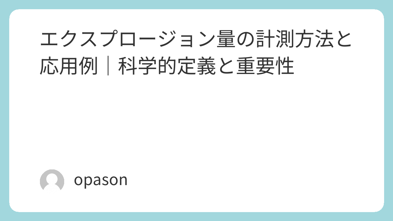 「エクスプロージョン量」という言葉は、特に化学や物理学の分野でよく使われます。爆発の規模や強さを測定するために使用されるこの指標は、危険物を取り扱う産業や安全管理において非常に重要な役割を果たします。本記事では、エクスプロージョン量の基本的な理解から、その計測方法、関連する測定機器について解説します。これにより、エクスプロージョン量の概念と、実際の応用例を理解していただけるでしょう。