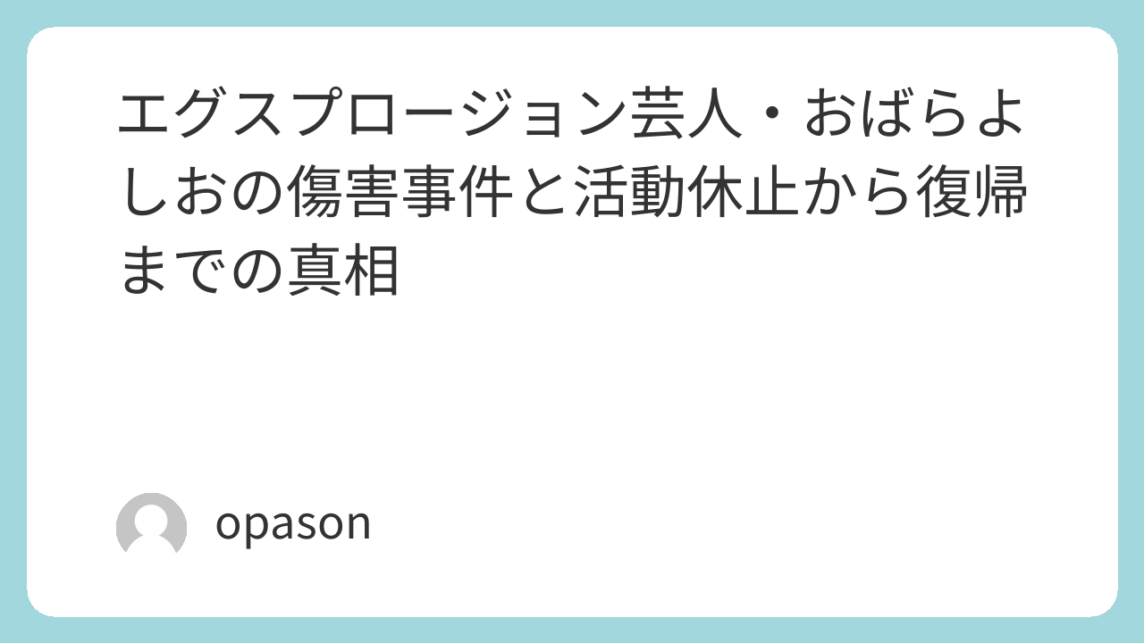 エグスプロージョン芸人・おばらよしおの傷害事件と活動休止から復帰までの真相