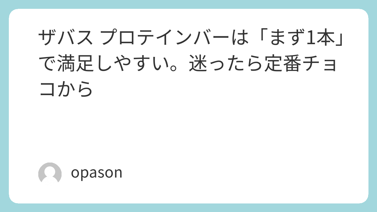 プロテインバーでいちばん気になるのは、結局「おいしいか」「続くか」です。ザバスは口コミを見ても“お菓子として成立する寄り”に語られることが多く、甘さがしっかりあって、コンビニで買えるおやつの延長線で取り入れやすいのが強みです。だから、最初からストイックに“栄養だけ”を狙うより、まずは間食の置き換えとして導入する人の満足度が上がりやすいタイプだと感じます。