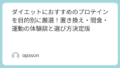 「1日何本まで?」は、体格や食事内容、運動量で正解が変わります。とはいえ、まずは“間食の置き換えで1本”から始めるのが現実的です。バーを足すのではなく、普段の甘い間食と入れ替えるイメージにすると、意図しないカロリー増を避けやすくなります。あとは、食べた日の夜に空腹が暴れないか、逆に胃が重くならないかを見て、自分のベストなタイミングを決めるのがいちばん確実です。