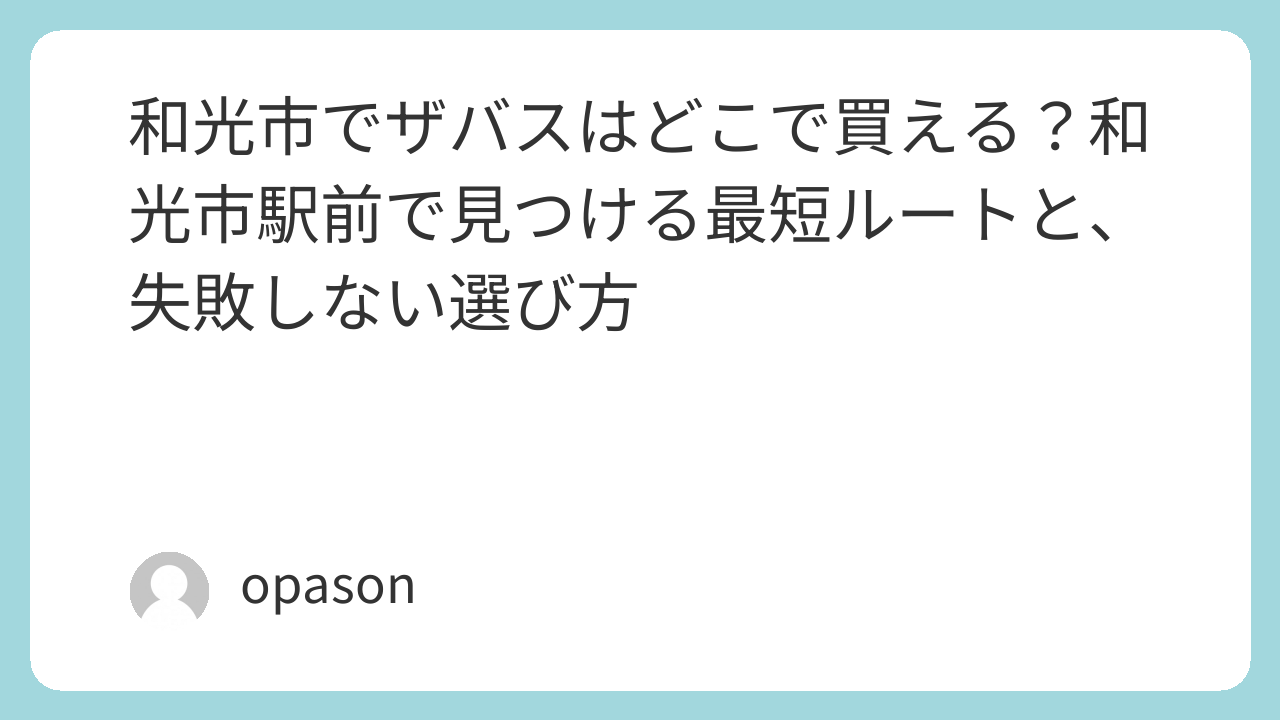 まとめ:和光市でザバスを探すなら、駅前で“短距離に複数当たる”のが正解