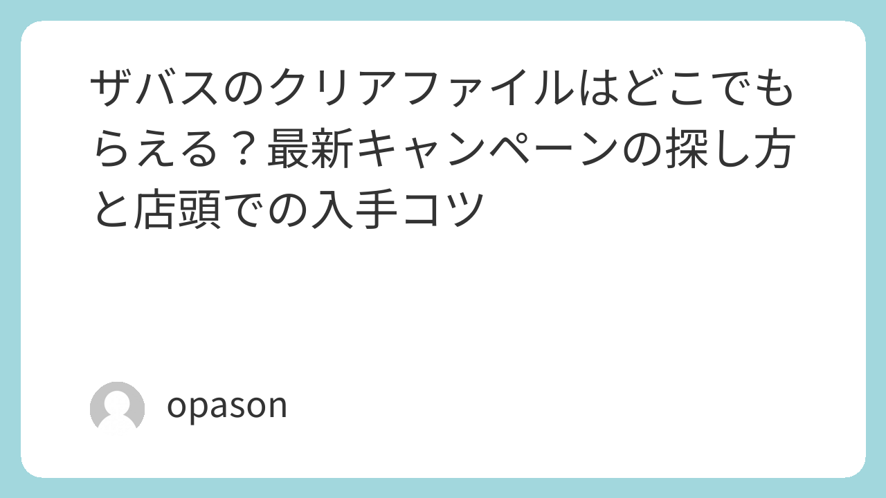 ザバスのクリアファイルは、店頭キャンペーンの購入特典として出ることが多く、条件も店舗も一定ではありません。だからこそ、当たり先を固定して最新情報を拾い、現場では売り場だけでなく特設台まで見て、最後は店員さんに確認して確定させる。この順番が、いちばんムダが少なくて、手に入る確率が上がります。