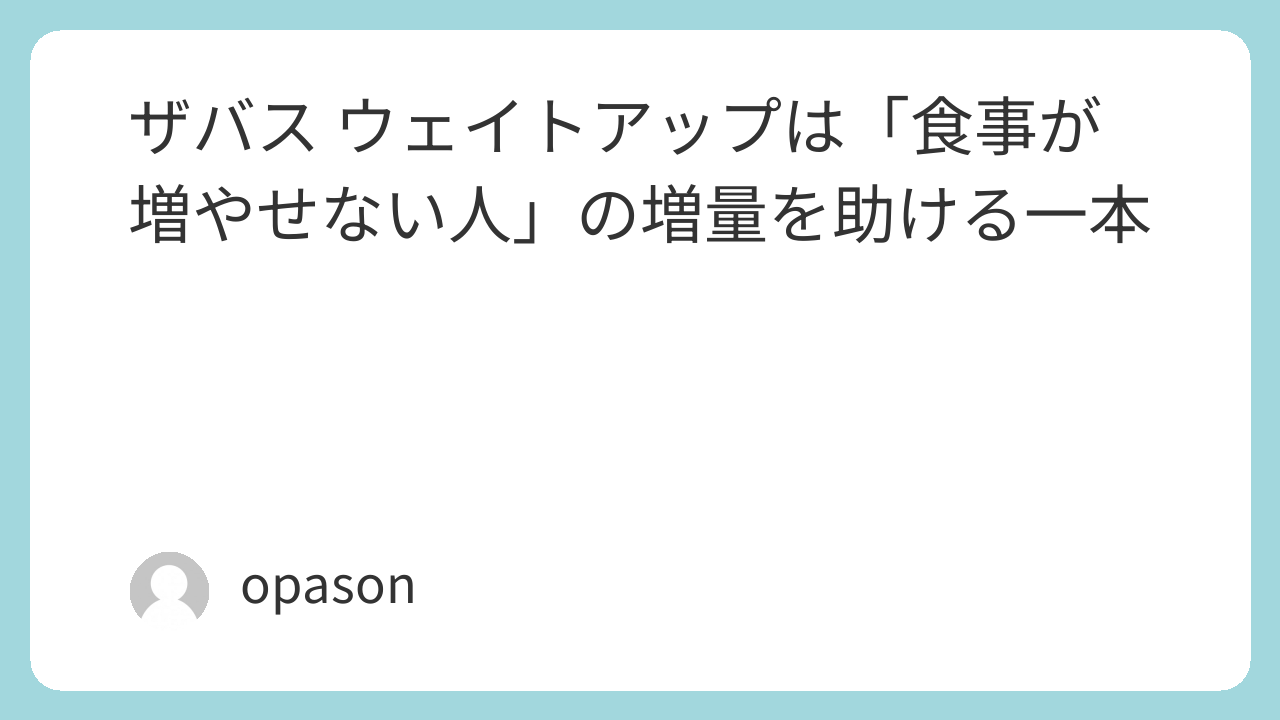 ザバス ウェイトアップは、食事を無理に増やせない人が“毎日ちょっとの上乗せ”を作るのに向いています。ポイントは、トレ後だけの特別枠にせず、食事が薄くなる時間帯に置いて、シェイカーで確実に飲み切れる形にすることです。まずは[明治 ザバス アスリート ウェイトアップ バナナ風味 20食分](https://www.amazon.co.jp/s?k=明治+ザバス+アスリート+ウェイトアップ+バナナ風味+20食分&tag=opason-22)で続けられる形を作り、手応えが出たら[明治 ザバス アスリート ウェイトアップ バナナ風味 60食分(1260g)](https://www.amazon.co.jp/s?k=明治+ザバス+アスリート+ウェイトアップ+バナナ風味+60食分+1260g&tag=opason-22)へ、という流れが失敗しにくいです。継続できるやり方に落とし込めた瞬間から、増量は一気に現実味を帯びてきます。