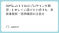 特に腎機能に不安がある場合は、自己判断でたんぱく質を増やすのは避けるべきです。プロテインはあくまで食品ですが、治療方針と衝突することがあります。迷う場合は主治医に相談し、許容範囲の中で“足りない分を補う”設計にしてください。