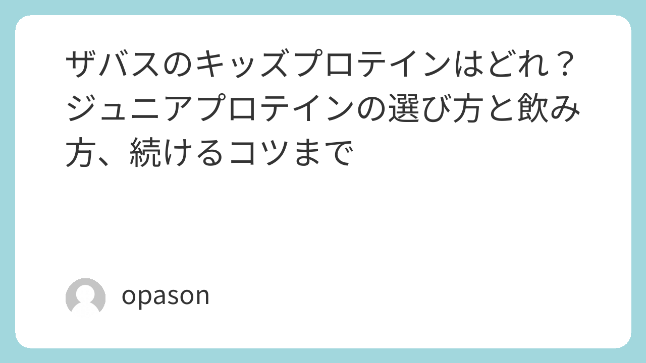 最後に、買ってから後悔しないコツは「最初から大袋にしない」「味の方向性を先に決める」「混ぜ方の失敗を減らす」の3つです。ココア系が好きで牛乳がいける子なら、まずは「ザバス ジュニアプロテイン ココア味 210g(約15食分) https://www.amazon.co.jp/s?k=%E3%82%B6%E3%83%90%E3%82%B9%20%E3%82%B8%E3%83%A5%E3%83%8B%E3%82%A2%E3%83%97%E3%83%AD%E3%83%86%E3%82%A4%E3%83%B3%20%E3%82%B3%E3%82%B3%E3%82%A2%E5%91%B3%20210g%EF%BC%88%E7%B4%8415%E9%A3%9F%E5%88%86%EF%BC%89&tag=opason-22 」で様子見、さっぱり系が好きなら「ザバス ジュニアプロテイン マスカット風味 168g(約12食分) https://www.amazon.co.jp/s?k=%E3%82%B6%E3%83%90%E3%82%B9%20%E3%82%B8%E3%83%A5%E3%83%8B%E3%82%A2%E3%83%97%E3%83%AD%E3%83%86%E3%82%A4%E3%83%B3%20%E3%83%9E%E3%82%B9%E3%82%AB%E3%83%83%E3%83%88%E9%A2%A8%E5%91%B3%20168g%EF%BC%88%E7%B4%8412%E9%A3%9F%E5%88%86%EF%BC%89&tag=opason-22 」から始めるのが堅いです。続けられると分かった時点で大容量に切り替えれば、無理なく“家の習慣”にできます。
