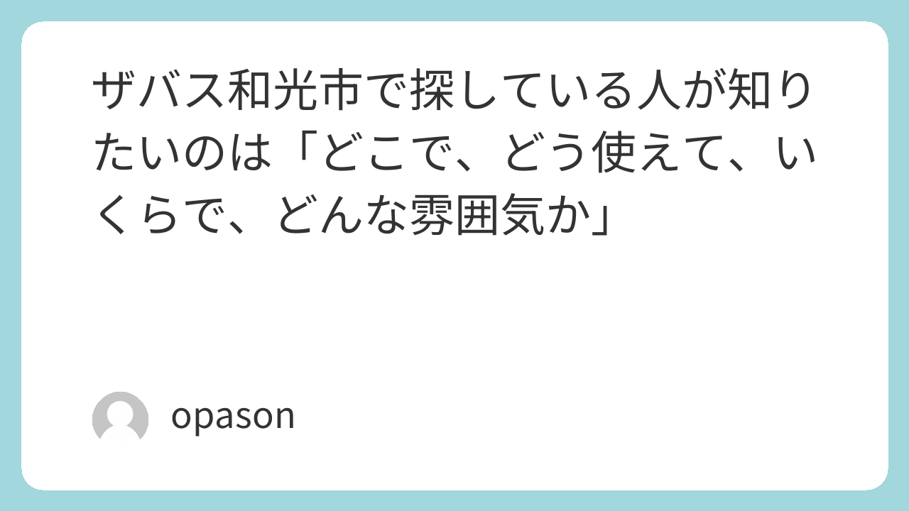 ザバス和光市で探している人が知りたいのは「どこで、どう使えて、いくらで、どんな雰囲気か」