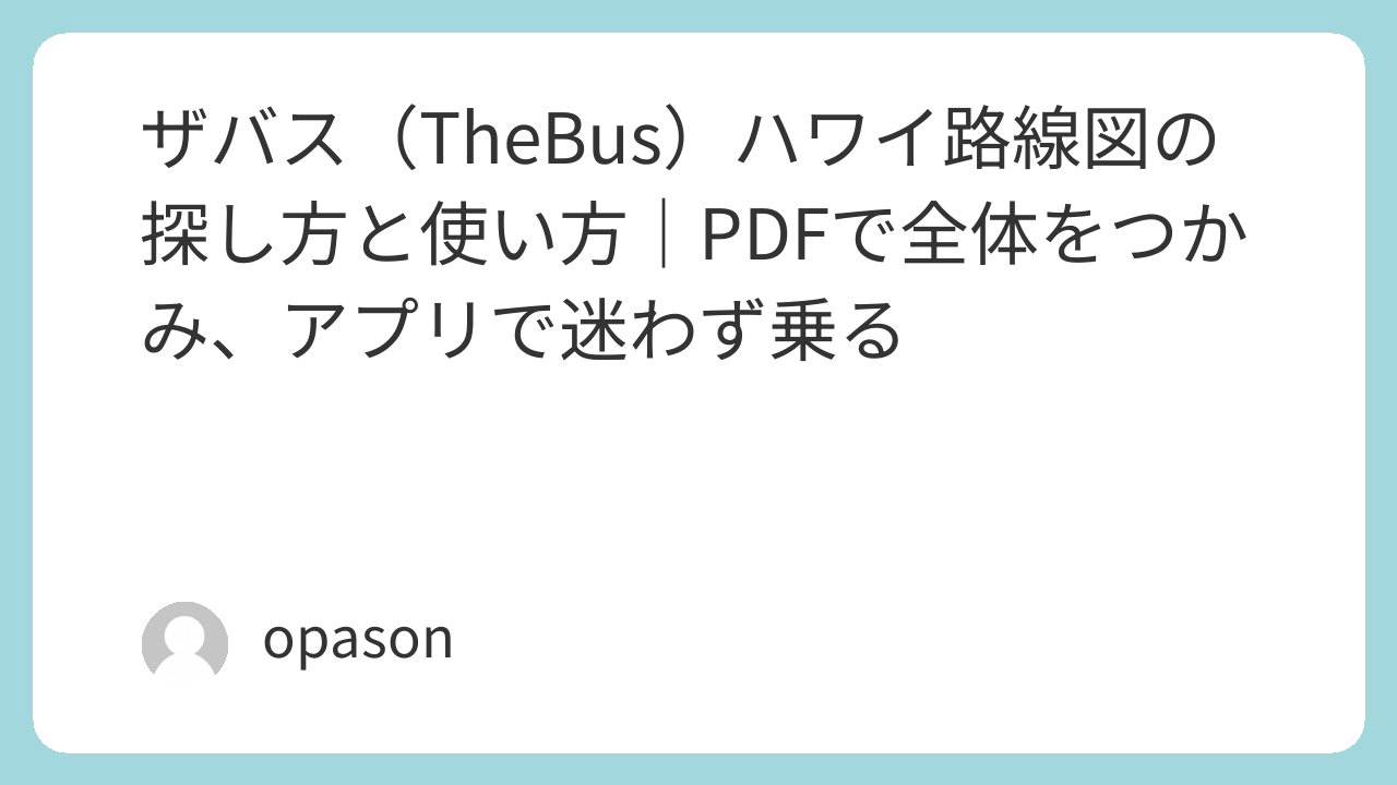 旅の前に一冊だけ紙の情報を持っていきたい派なら、「地球の歩き方 ハワイ オアフ島&ホノルル」(https://www.amazon.co.jp/s?k=%E5%9C%B0%E7%90%83%E3%81%AE%E6%AD%A9%E3%81%8D%E6%96%B9+%E3%83%8F%E3%83%AF%E3%82%A4+%E3%82%AA%E3%82%A2%E3%83%95%E5%B3%B6%EF%BC%86%E3%83%9B%E3%83%8E%E3%83%AB%E3%83%AB&tag=opason-22)や、「るるぶ ハワイ」(https://www.amazon.co.jp/s?k=%E3%82%8B%E3%82%8B%E3%81%B6+%E3%83%8F%E3%83%AF%E3%82%A4&tag=opason-22)のような定番ガイドが、路線図そのものというより“バスで行ける観光先の距離感”を掴むのに役立ちます。電源まわりも地味に効くので、ホテルで充電口が足りないと感じやすい人は「海外旅行 変換プラグ ハワイ」(https://www.amazon.co.jp/s?k=%E6%B5%B7%E5%A4%96%E6%97%85%E8%A1%8C+%E5%A4%89%E6%8F%9B%E3%83%97%E3%83%A9%E3%82%B0+%E3%83%8F%E3%83%AF%E3%82%A4&tag=opason-22)も一緒に準備しておくと、移動日のバッテリー不安が減ります。