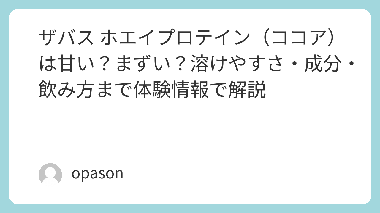 この記事では、いま買う人が多い前提で「ザバス ホエイプロテイン100 ココア味(広告URL:https://www.amazon.co.jp/s?k=%E3%82%B6%E3%83%90%E3%82%B9%20%E3%83%9B%E3%82%A8%E3%82%A4%E3%83%97%E3%83%AD%E3%83%86%E3%82%A4%E3%83%B3100%20%E3%82%B3%E3%82%B3%E3%82%A2%E5%91%B3&tag=opason-22)」を中心に話を進めます。
