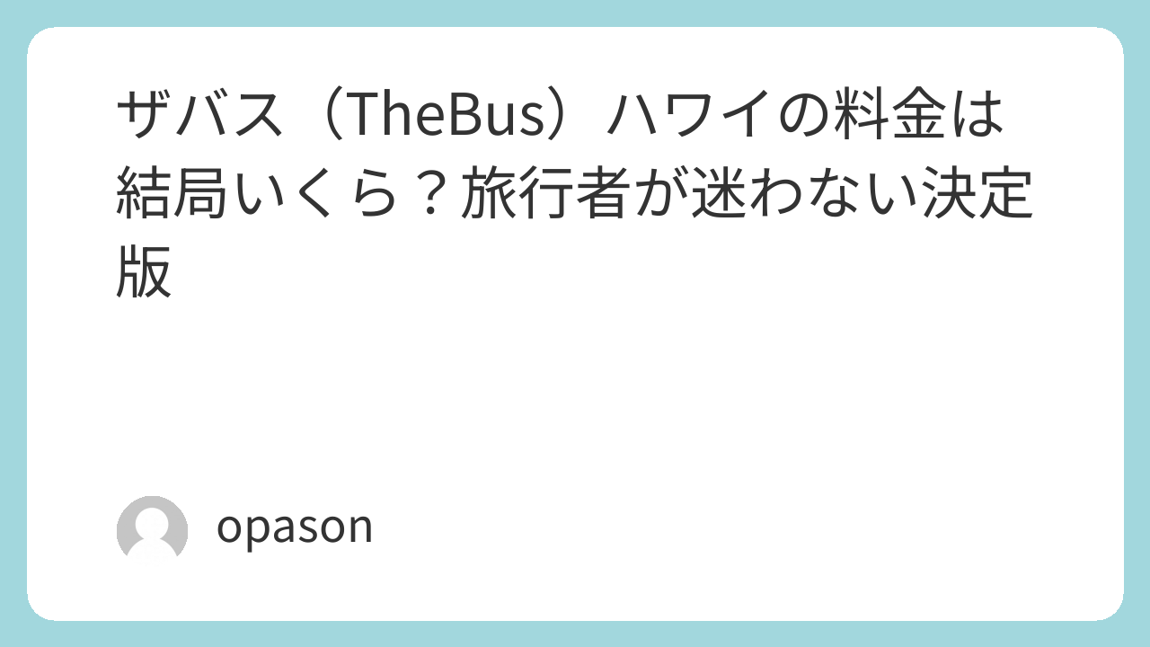 ハワイのザバス料金は、数字だけ見ればシンプルでも、実際の快適さは支払い方と旅程で大きく変わります。片道3ドルを基準に、HOLOの乗り継ぎとデイキャップを味方につければ、移動そのものが旅行のストレスになりにくいはずです。