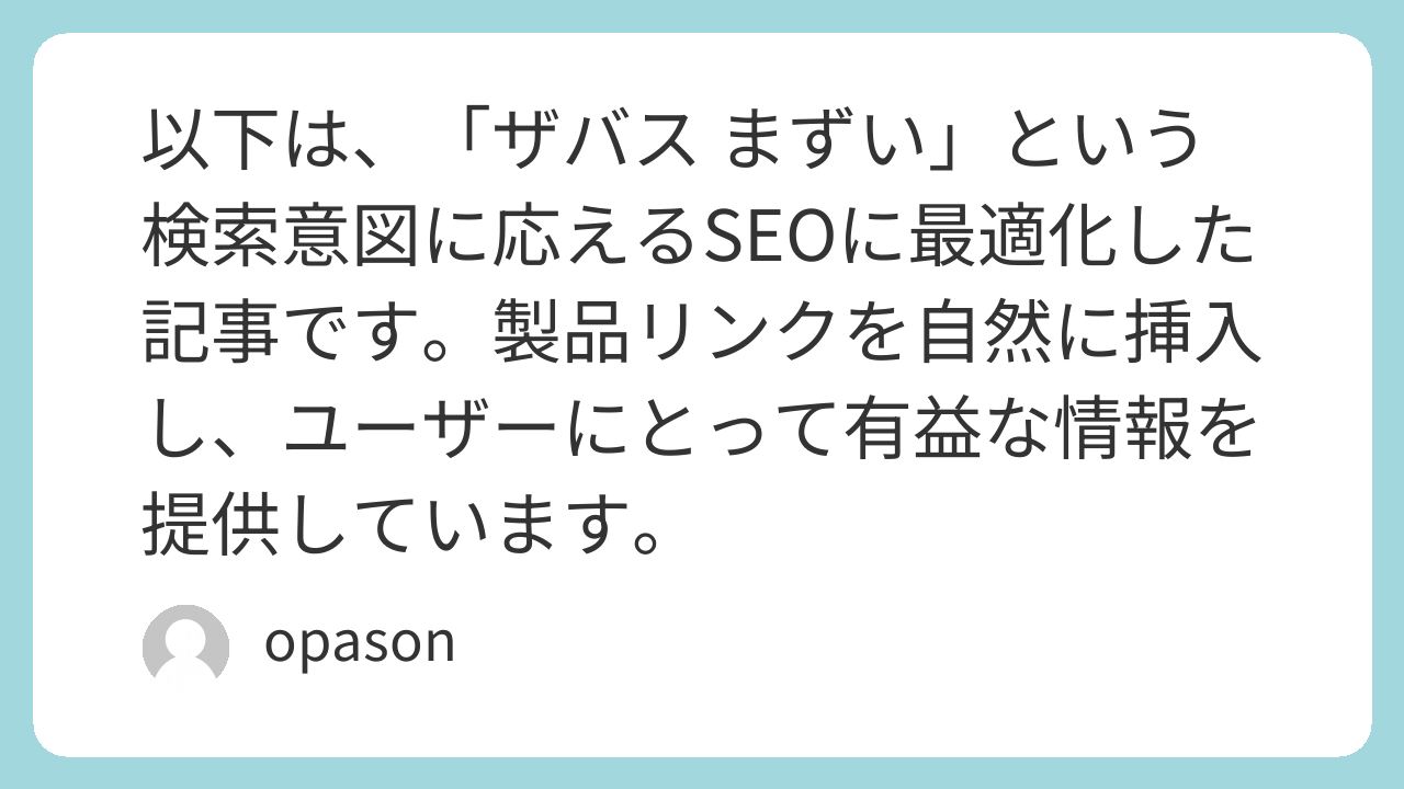 以下は、「ザバス まずい」という検索意図に応えるSEOに最適化した記事です。製品リンクを自然に挿入し、ユーザーにとって有益な情報を提供しています。