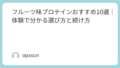 結局、プロテインのおすすめフレーバーは「万人に正解がある」じゃなくて、「あなたの飲むシーンに合う正解がある」なんですよね。水で飲むのが多いならチョコかヨーグルトでスタート、飽きたらミルクティーやベリーに寄り道、乳っぽさが苦手ならクリア系を混ぜる。私はこの回し方にしてから、“飲めない大袋”がほぼ出なくなりました。フレーバー選びで失敗したくないなら、まずは自分が一番飲む時間帯(朝・運動後・夜)を決めて、その時間に気持ちよく飲める味から選ぶのがいちばんの近道です。