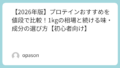 この2軸で見ると、寝る前の本命になりやすいのは“ゆっくり系”のカゼイン。軽さ最優先ならホエイを少量。乳製品でお腹が張るタイプならソイ、という順に落としどころが見つかりやすいです。