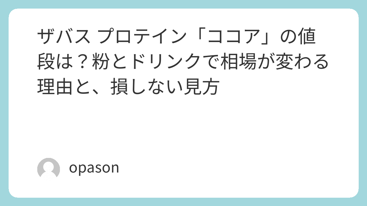 「ザバスのココア味がいくらか」は、粉かドリンクかで景色が変わります。粉は1回あたりの単価で見ると納得できて、ドリンクは買いやすさと手間ゼロの価値がそのまま価格に乗っている。どちらを選んでも、最終的には「続けられるか」が正解です。