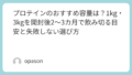 夜にプロテインを取り入れるとき、いきなり完璧を狙うより、まずは1週間だけ「就寝30〜60分前」「タンパク質20g前後」「水割り」を守ってみてください。
