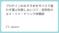 最初は、量を少し控えめに作って味とお腹の相性を確認し、溶かし方を整えてから“いつ飲むか”を生活に固定する。この順番にすると、WPCでもWPIでも「結局続かなかった」をかなり減らせます。