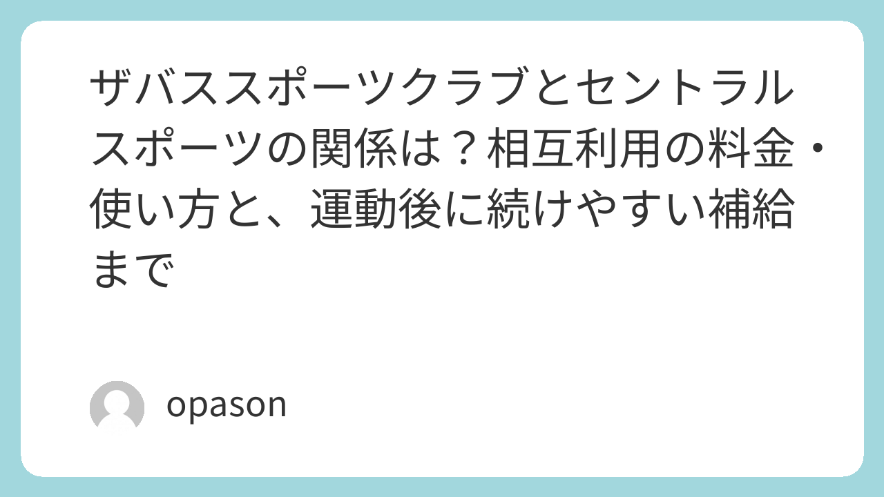ザバススポーツクラブとセントラルスポーツの関係は?相互利用の料金・使い方と、運動後に続けやすい補給まで