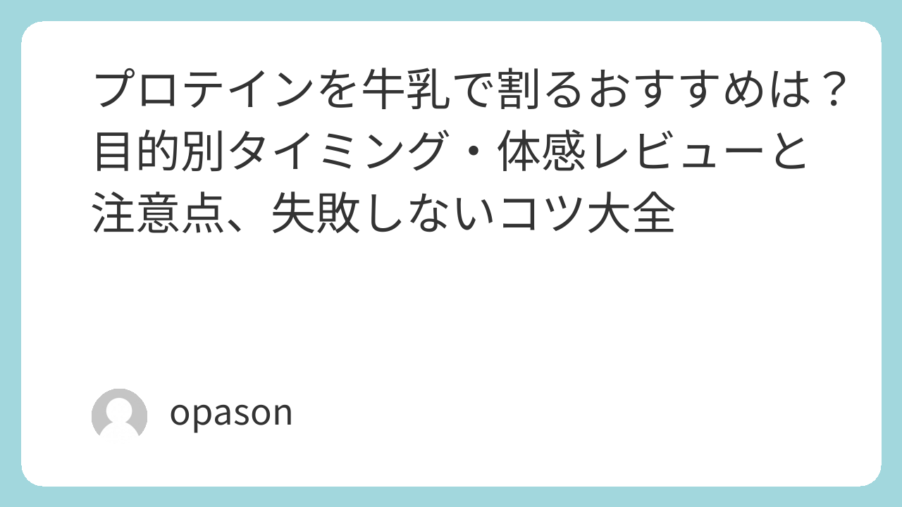 水割りが続かないとき、いちばん効くのが「牛乳で割る」でした。味が一気に“デザート寄り”になって、プロテイン特有の粉っぽさやクセが薄まり、「今日も飲むか」が自然になります。反面、牛乳は水より重く感じやすく、減量中だとカロリーも上乗せになるので、万能ではありません。この記事では「プロテインを牛乳で割るおすすめ」という検索意図に合わせて、体感ベースで“合う人・合わない人”を整理しつつ、失敗しない牛乳選びとプロテイン選び、そしてダマ・お腹ゴロゴロ対策までまとめます。