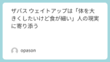 基本はホエイを軸にして、体重が停滞するなら「間食に少しだけ増量用」を足す。いきなり全部ゲイナーにしない方が、脂肪が増えすぎにくいです。増量用を足すなら、まずはザバス(SAVAS)ウェイトアップのような国内で買いやすい定番から始める人が多い印象です。