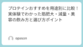 - WPI:乳糖などが少なめで「お腹がラクだった」という声が出やすい側。反面、価格が上がりやすい。
