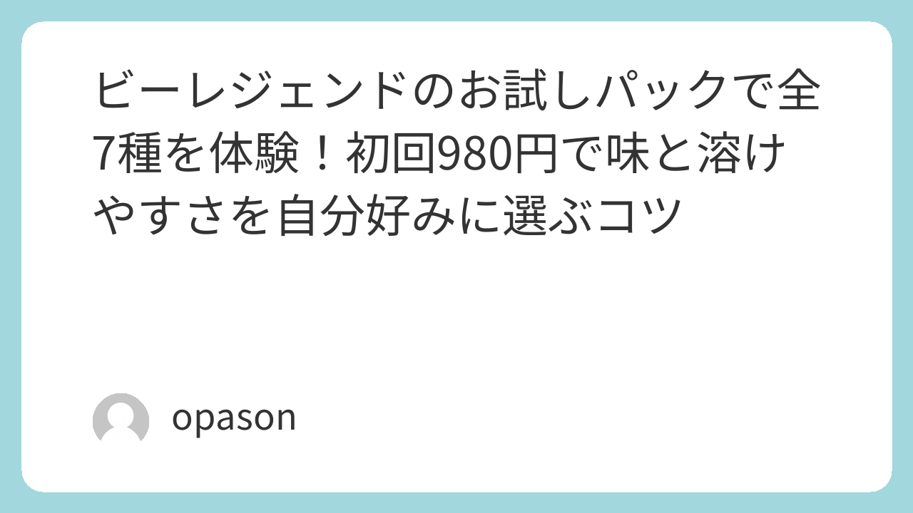 ビーレジェンドのお試しパックで全7種を体験!初回980円で味と溶けやすさを自分好みに選ぶコツ