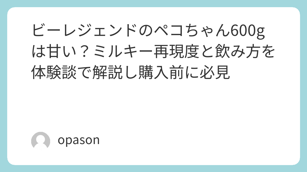 もし「とりあえず定番の1kgも気になる」という人は、比較対象として[ビーレジェンド ホエイプロテイン ペコちゃん(ミルキー風味)1kg](https://www.amazon.co.jp/s?k=%E3%83%93%E3%83%BC%E3%83%AC%E3%82%B8%E3%82%A7%E3%83%B3%E3%83%89%20%E3%83%9B%E3%82%A8%E3%82%A4%E3%83%97%E3%83%AD%E3%83%86%E3%82%A4%E3%83%B3%20%E3%83%9A%E3%82%B3%E3%81%A1%E3%82%83%E3%82%93%20%E3%83%9F%E3%83%AB%E3%82%AD%E3%83%BC%E9%A2%A8%E5%91%B3%201kg&tag=opason-22)も見ておくとイメージが掴みやすいです。ただ、甘さが合うかは“レビューを読んでも最後は自分の舌”なので、はじめの一袋は600gという選び方が無難です。