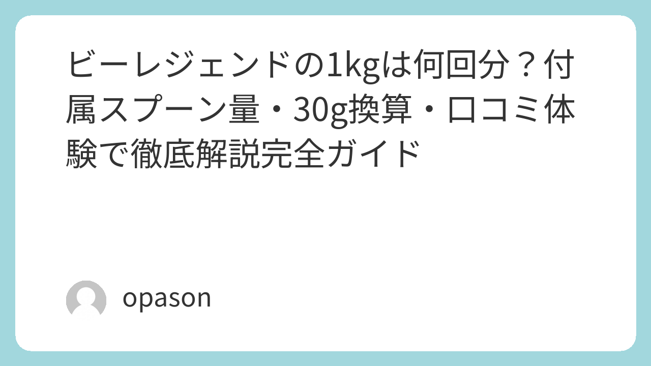 ビーレジェンドの1kgは何回分?付属スプーン量・30g換算・口コミ体験で徹底解説完全ガイド