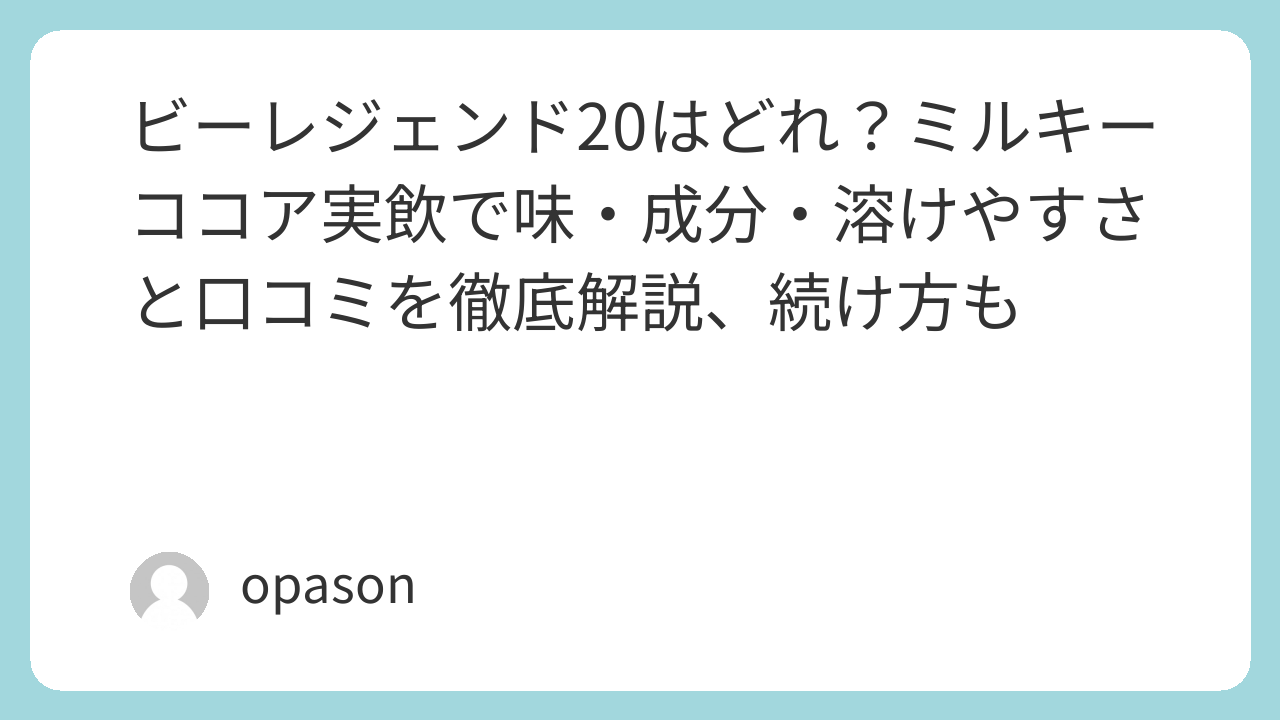 ビーレジェンド20はどれ?ミルキーココア実飲で味・成分・溶けやすさと口コミを徹底解説、続け方も