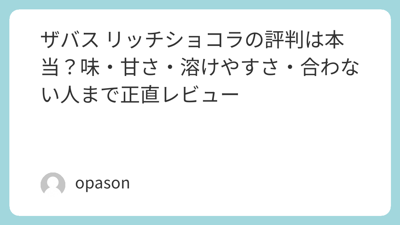 もしあなたが「プロテイン独特のクセが苦手」で評判を調べているなら、最初の一杯は水割りで味の土台を確認して、次に牛乳寄りで“続くかどうか”を判断するのがおすすめです。買うなら、まずは少量から試しやすい[ザバス ホエイプロテイン100 リッチショコラ味 トライアルタイプ 10.5g](https://www.amazon.co.jp/s?k=%E3%82%B6%E3%83%90%E3%82%B9%20%E3%83%9B%E3%82%A8%E3%82%A4%E3%83%97%E3%83%AD%E3%83%86%E3%82%A4%E3%83%B3100%20%E3%83%AA%E3%83%83%E3%83%81%E3%82%B7%E3%83%A7%E3%82%B3%E3%83%A9%E5%91%B3%20%E3%83%88%E3%83%A9%E3%82%A4%E3%82%A2%E3%83%AB%E3%82%BF%E3%82%A4%E3%83%97%2010.5g&tag=opason-22)が一番安全です。