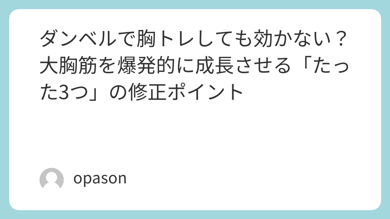 ダンベルで胸トレしても効かない?大胸筋を爆発的に成長させる「たった3つ」の修正ポイント