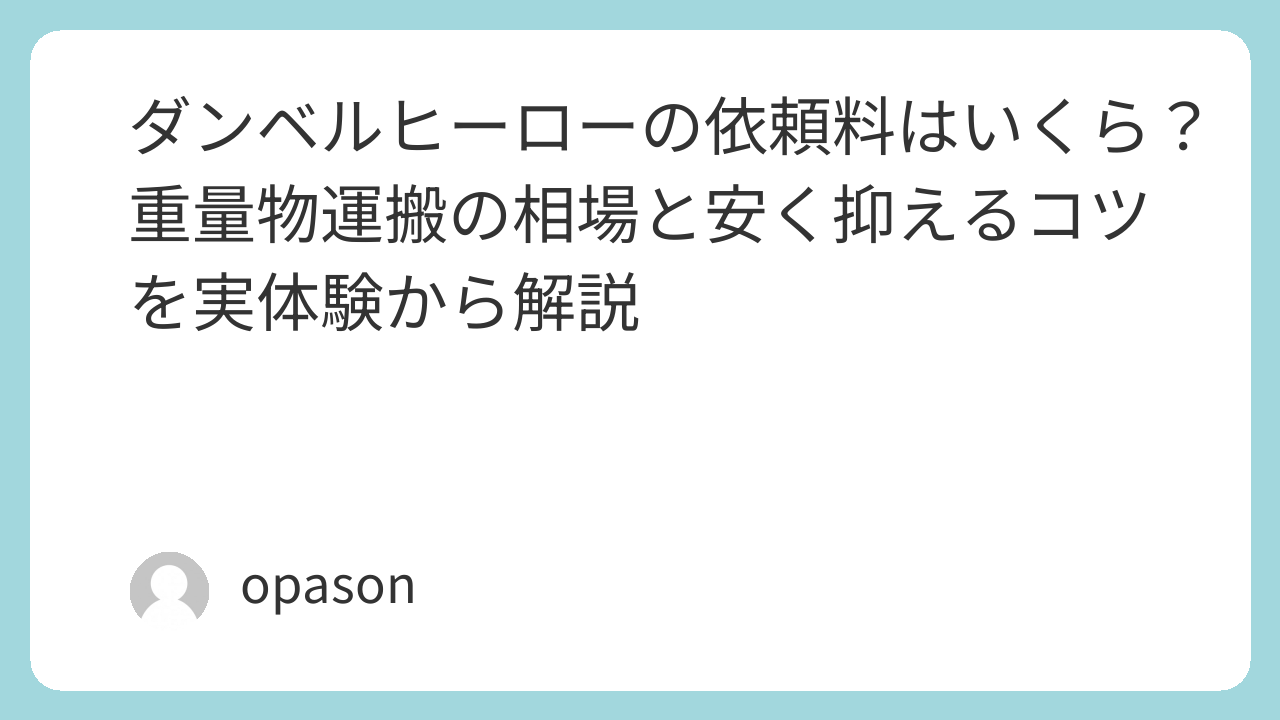 ダンベルヒーローの依頼料はいくら?重量物運搬の相場と安く抑えるコツを実体験から解説