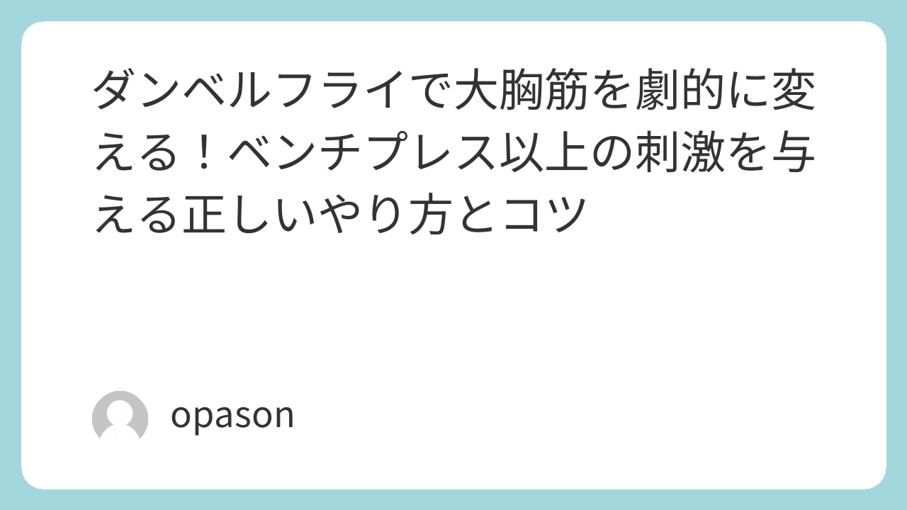 ダンベルフライは、単に重いものを挙げる種目ではなく、筋肉との「対話」を楽しむ種目です。正しいフォームを身につければ、あなたの胸板は間違いなく進化します。