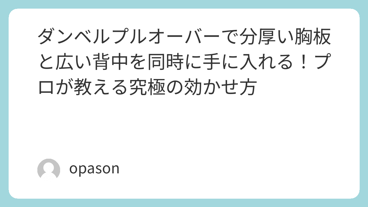 「胸を鍛えたいのに背中に効いてしまう」「肩が痛くて正解がわからない」——ダンベルプルオーバーほど、シンプルに見えて奥が深く、そして悩みの多い種目はないかもしれません。