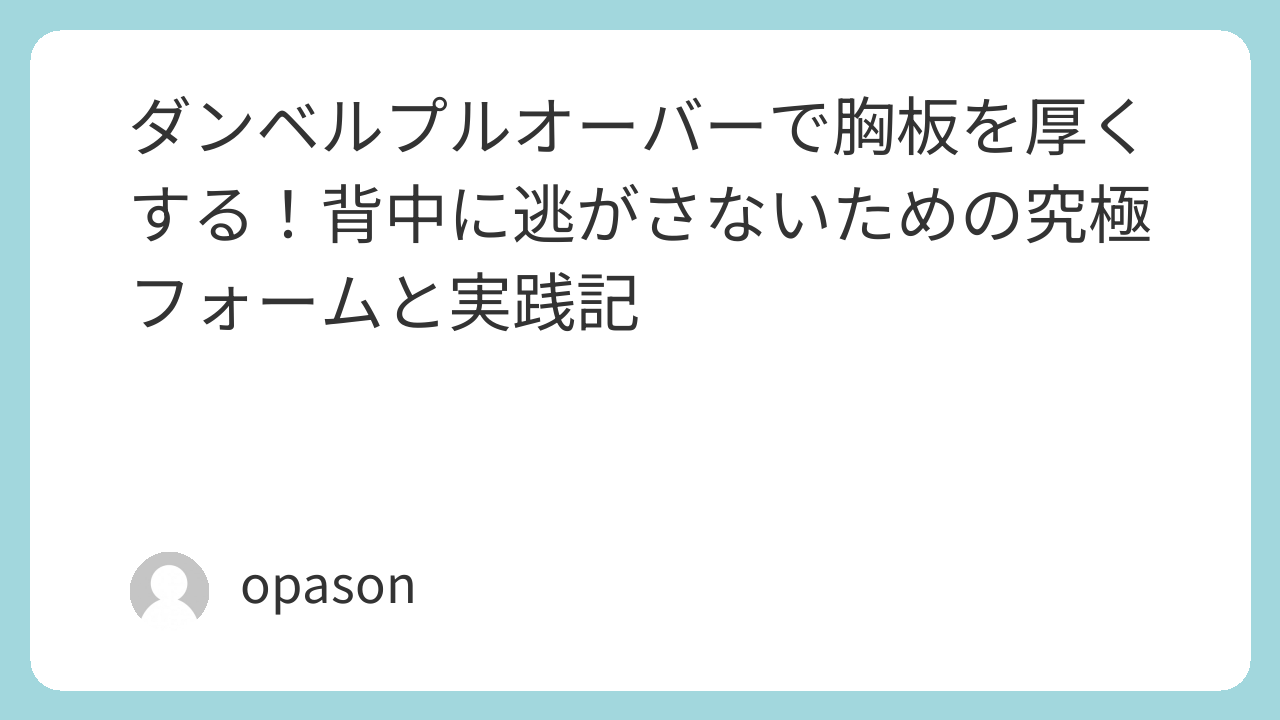 インクラインプレスで上部を、ダンベルフライで外側を狙った後に、このプルオーバーで大胸筋全体を縦に引き伸ばす。このルーティンを3ヶ月継続したところ、鏡で見た時の大胸筋の立体感が明らかに増し、Tシャツの胸元に確かな厚みが宿りました。