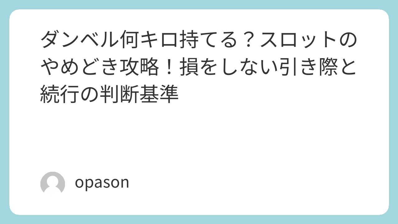 ダンベル何キロ持てる?スロットのやめどき攻略!損をしない引き際と続行の判断基準
