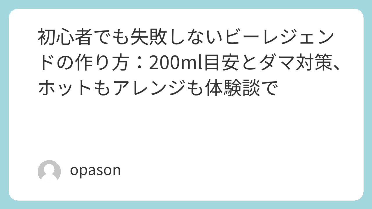 「ビーレジェンドの作り方」で検索する人が知りたいのは、だいたい3つです。まず“基本の分量と手順”。次に“ダマ・泡・液漏れの失敗をどう防ぐか”。最後に“飽きずに続ける割り方やアレンジ”。