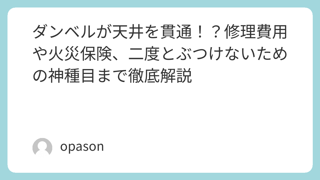 多くのトレーニーが知らない事実ですが、自宅の天井に穴を開けてしまった場合、**火災保険の「不測かつ突発的な事故(破損・汚損)」**という項目で修理費用がカバーされるケースが非常に多いです。