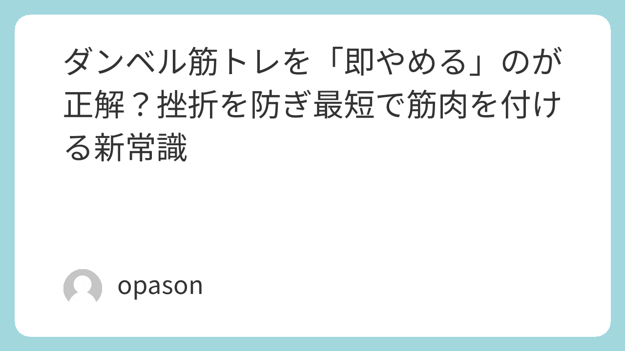 ダンベル筋トレを「即やめる」のが正解?挫折を防ぎ最短で筋肉を付ける新常識