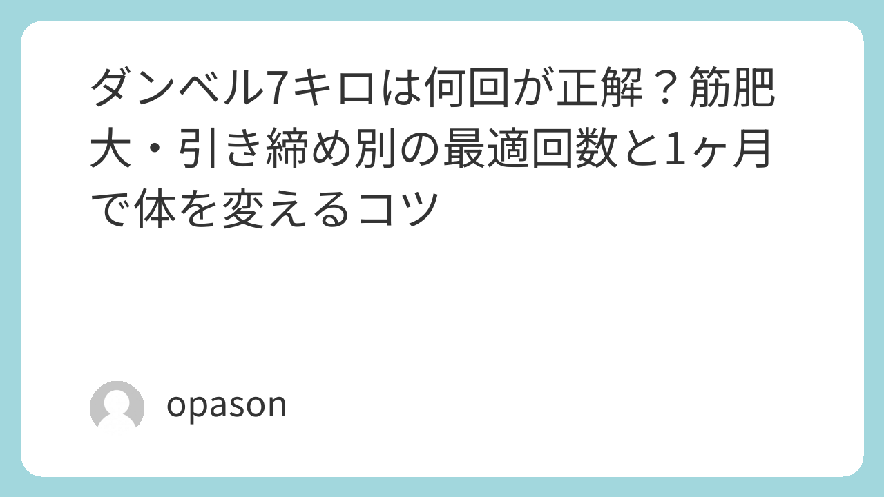今回は、SEOの一般的な理論を超えて、実際に7kgのダンベルを使い倒して分かった「目的別の正解回数」と、効果を最大化するトレーニング術をリアルにお伝えします。