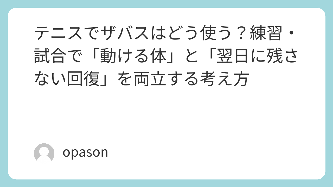 もしこの記事を読んで「どれを選べばいいか迷う」と感じたら、まずは練習後の一回を固定することから始めてみてください。粉末で習慣化したいなら「ザバス ホエイプロテイン100」https://www.amazon.co.jp/s?k=%E3%82%B6%E3%83%90%E3%82%B9+%E3%83%9B%E3%82%A8%E3%82%A4%E3%83%97%E3%83%AD%E3%83%86%E3%82%A4%E3%83%B3100&tag=opason-22、忙しい日はドリンクやブリックで逃がす。この“逃げ道”を用意できると、テニスの調子が安定しやすくなります。