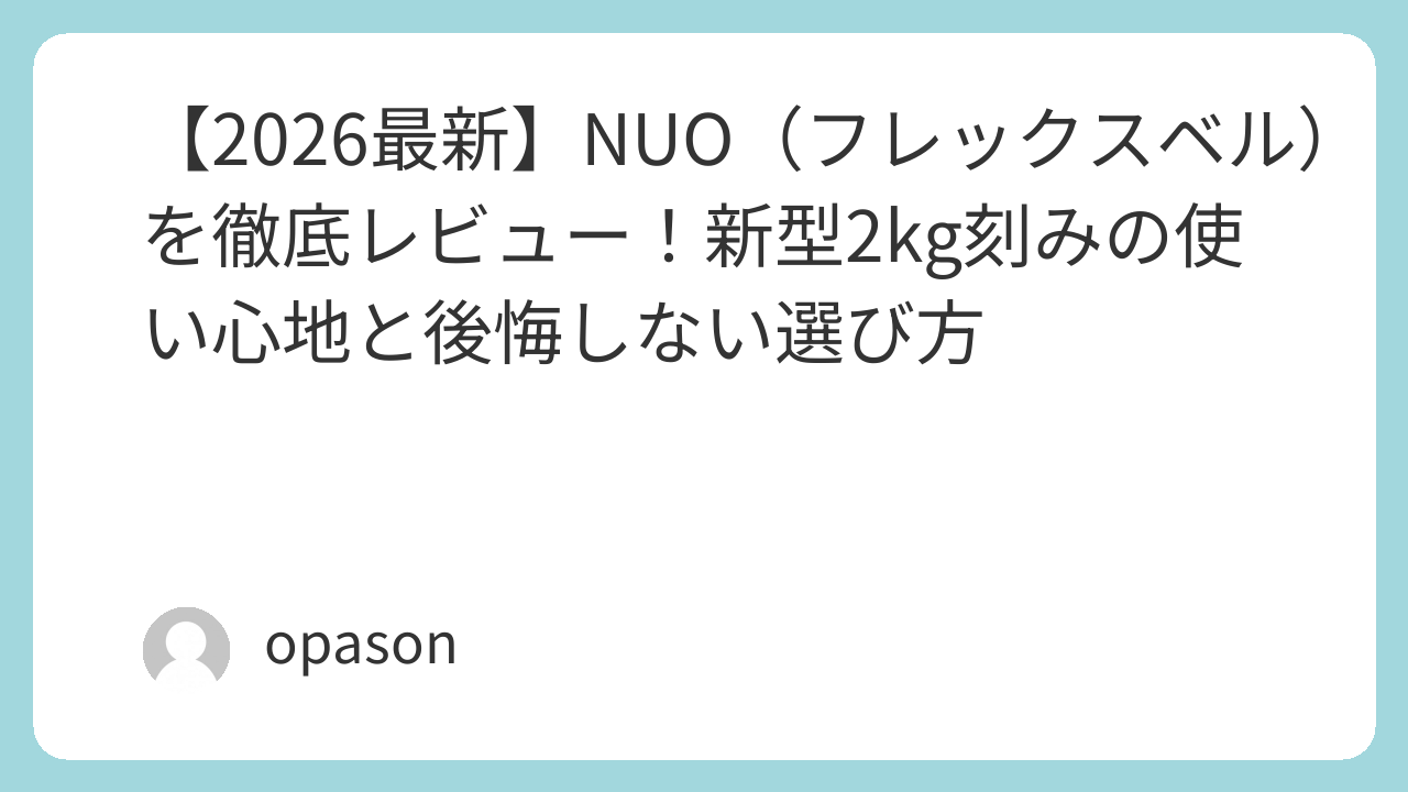 | NUO (20kg) | 2kg〜20kg | 2kg | フィットネス、女性、補助種目中心の方向け。 |