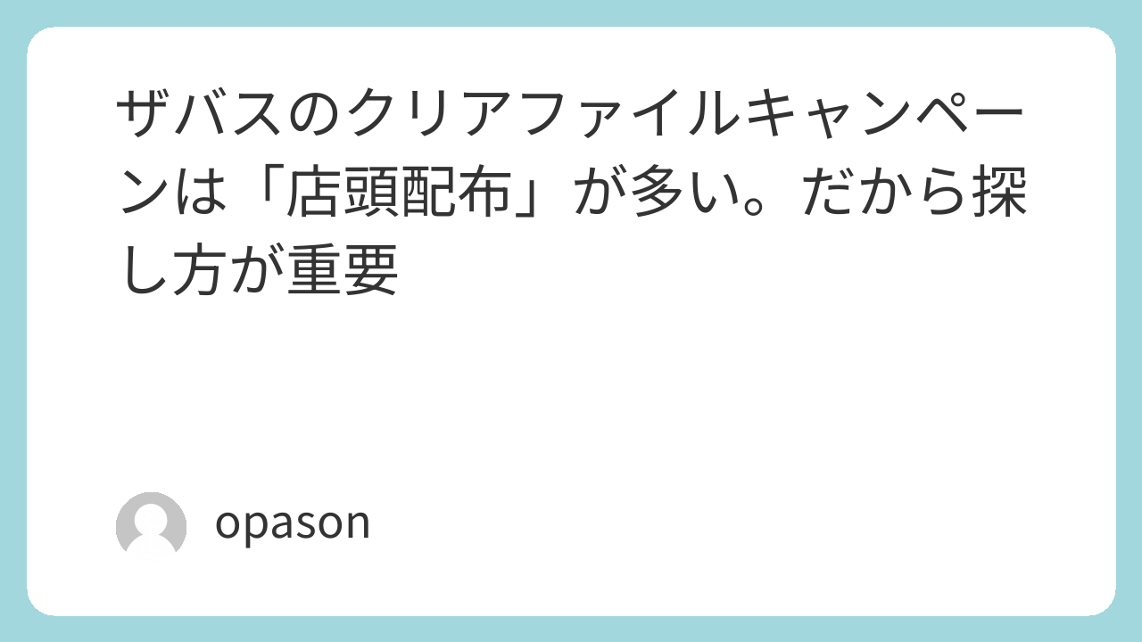 「ザバス クリアファイル キャンペーン」は、情報の出方が静かで、終わり方が速いのが特徴です。公式のキャンペーン一覧で大枠を押さえつつ、SNSでチェーン名と条件を当たり、最後は店頭POPか店員さんの確認で確定させる。この順番さえ守れば、無駄足はかなり減ります。(明治)