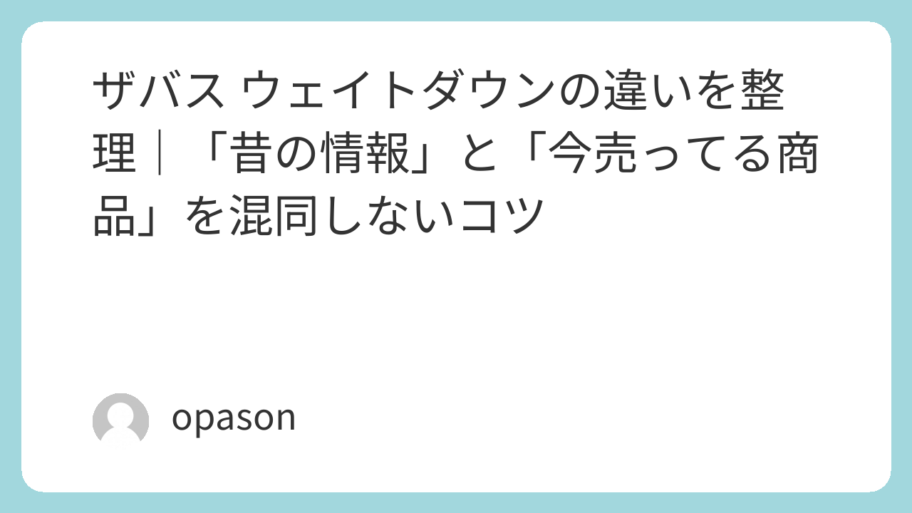 検索記事では、ウェイトダウンと一緒に別シリーズが比較対象として出ることがあります。たとえば美容寄りの設計を探している人の比較候補になりやすいのが、ザバス for Woman シェイプ&ビューティ(https://www.amazon.co.jp/s?k=%E3%82%B6%E3%83%90%E3%82%B9+for+Woman+%E3%82%B7%E3%82%A7%E3%82%A4%E3%83%97%26%E3%83%93%E3%83%A5%E3%83%BC%E3%83%86%E3%82%A3&tag=opason-22)です。減量というより“整えながら落としたい”方向の人が気にする文脈で出がちなので、記事内でも「目的が違うと比較がズレる」注意書きを入れると親切です。