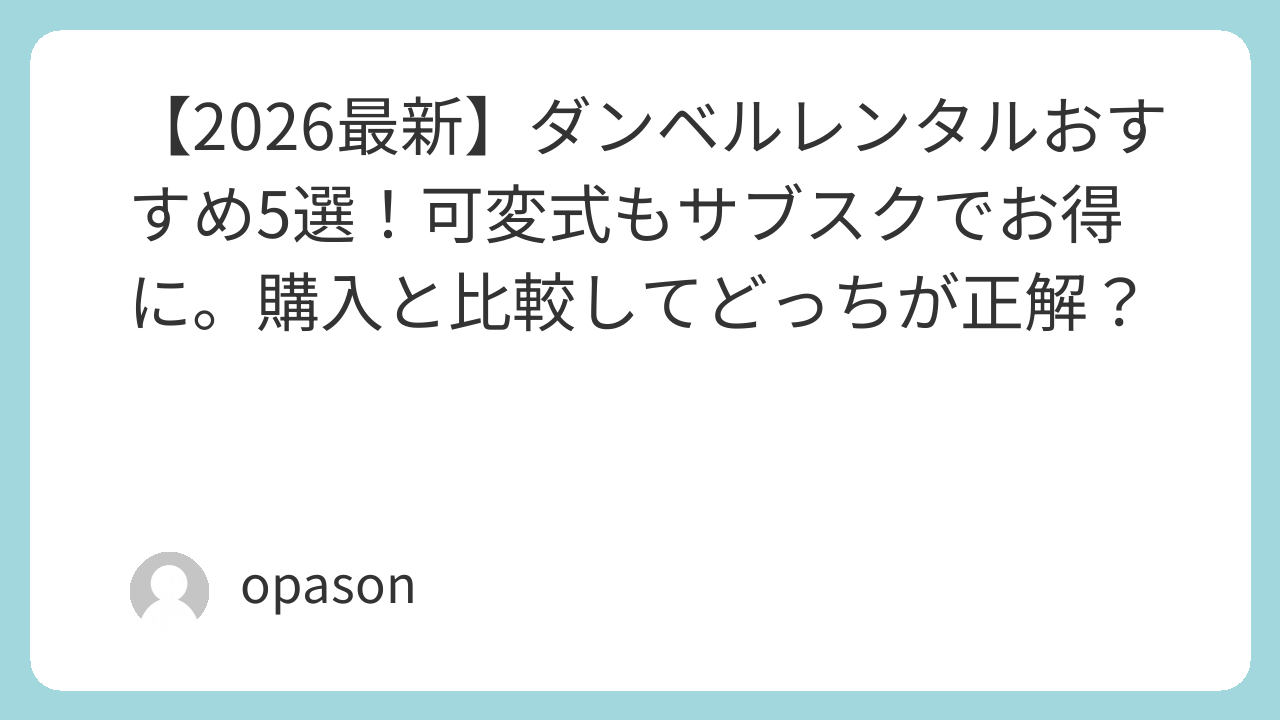 2026年版:失敗しないダンベルレンタル・サブスク5選